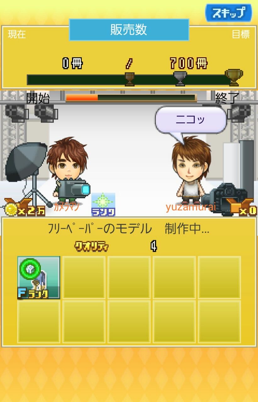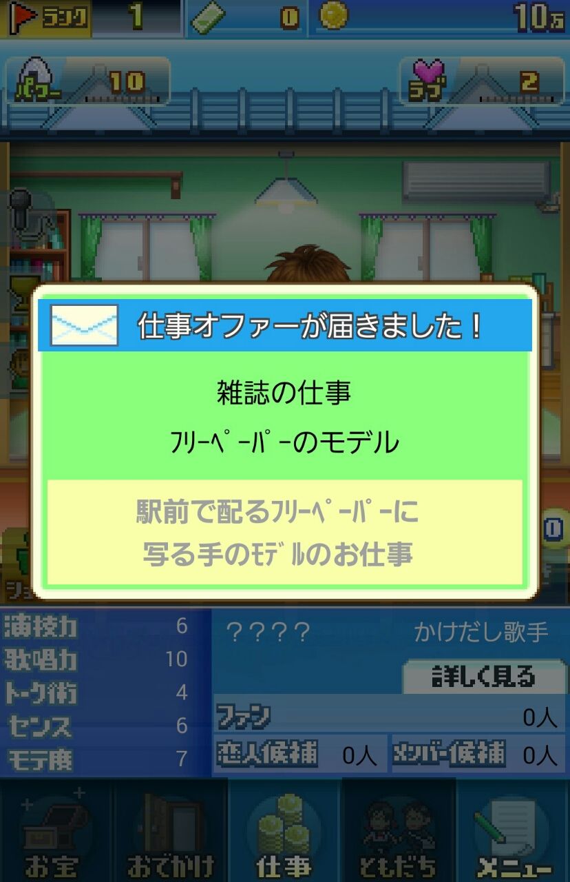 下にある仕事のボタンを押して仕事をしてみます。